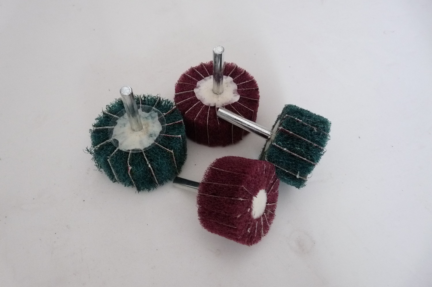 百潔布磨頭(百潔布與棕剛玉或鉆剛玉頁片交替以1:1的比例)呈放射狀地排列在木心之外,磨削能力極佳。處理后工件的表面線條均勻一致,散熱良好,不燒傷工件,從而降低研磨成本,提高工作效率。
